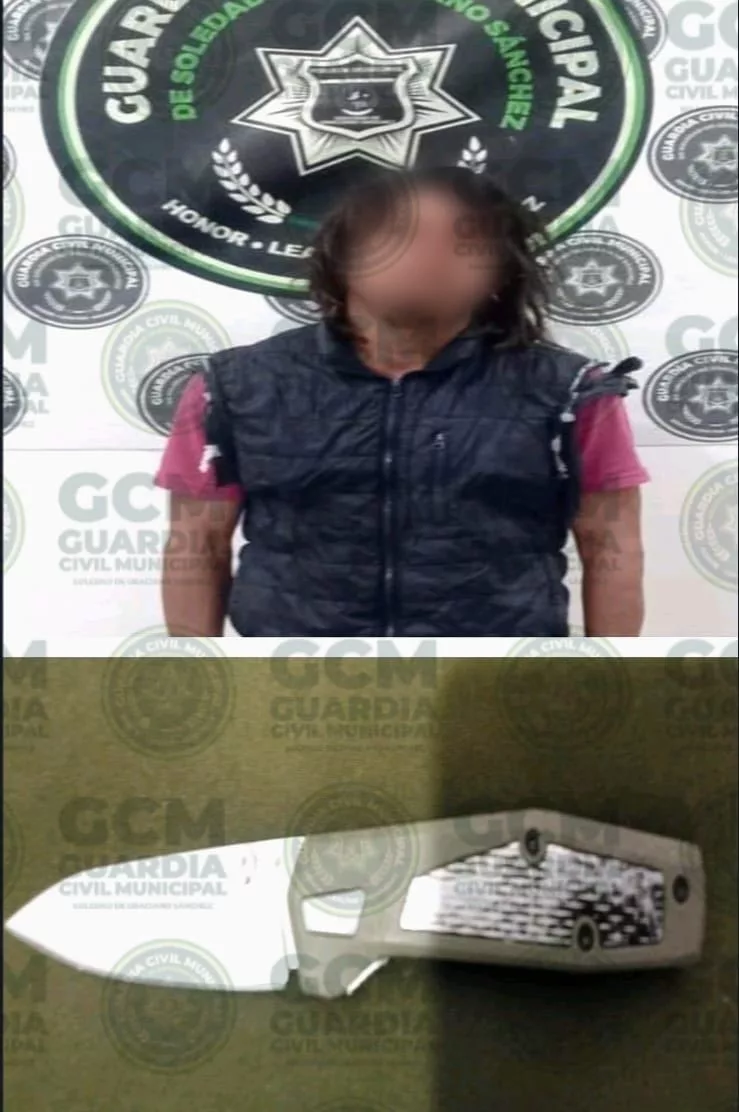 Más tarde, en carriles laterales de Carretera Matehuala, a la altura de la colonia Industrial Mexicana, oficiales municipales notaron que un sujeto comenzó a correr cuando notó su presencia, luego de darle alcance dijo llamarse Antonio «N» de 37 años, a quien le encontraron un objeto punzocortante similar a una navaja.