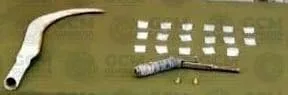 Los tres reaccionaron con una actitud agresiva, por lo que se aplicó el debido protocolo de actuación. A Jonathan “N” se le encontraron seis dosis de un material blanco similar a la droga sintética conocida como “cristal”, así como un arma de fabricación casera; a Juan “N”, seis envoltorios con el mismo material y un arma artesanal con forma de guadaña; mientras que a Karla “N” se le descubrieron cinco bolsas con polvo de características semejantes a la sustancia llamada “cristal”. También se aseguró el vehículo Nissan Active, modelo 2020, color blanco, el cual fue llevado a una pensión.