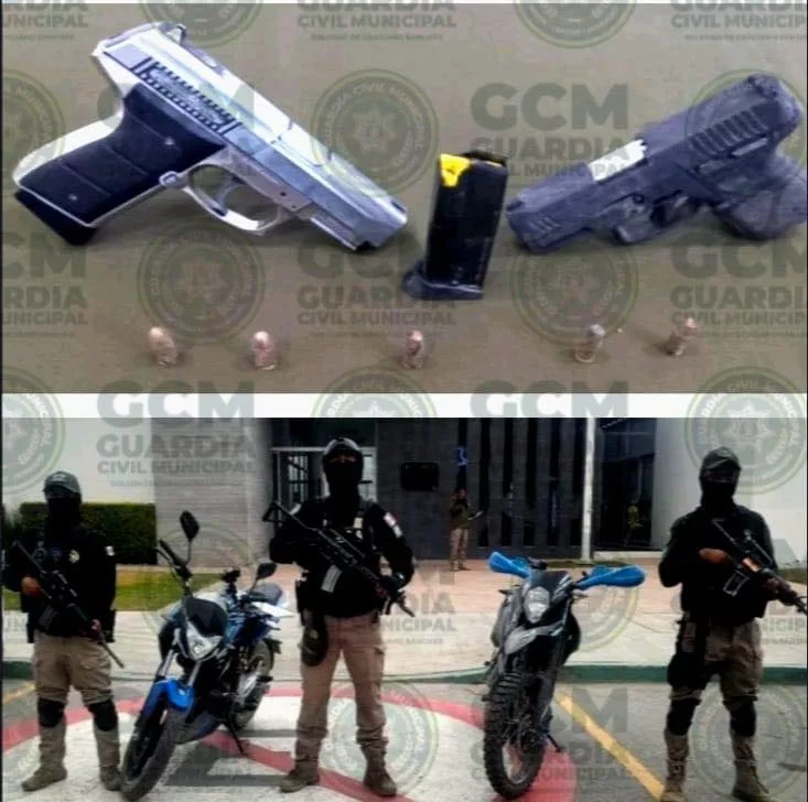 Después de varios minutos de diálogo, los sujetos se identificaron como Brayan “N” de 16 años, Jonathan “N” de 18 años y Sergio “N” de 19 años; estos últimos reaccionaron de forma agresiva, por lo que se procedió conforme al debido protocolo de actuación, localizándoles un arma de fuego tipo escuadra calibre 9 milímetros con un cargador abastecido, así como un arma deportiva calibre 4.5.
