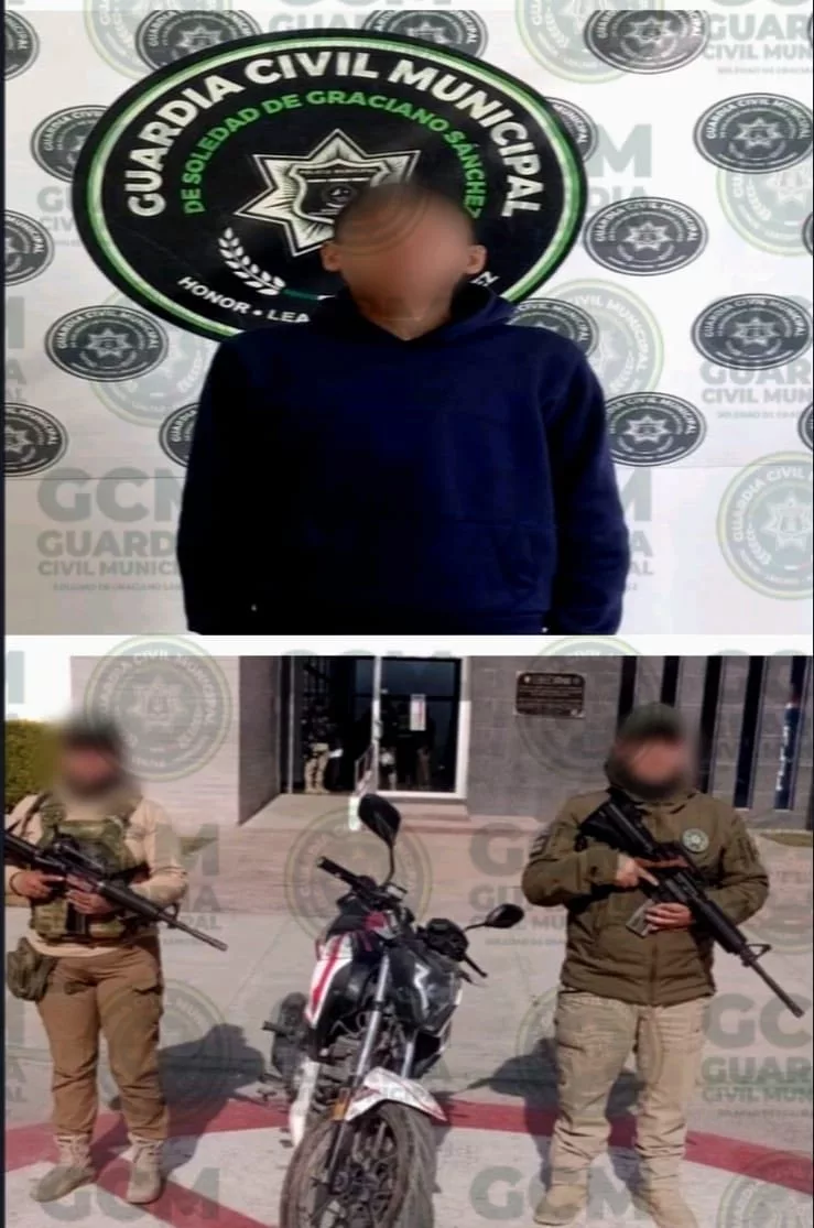 Derivado de la presencia permanente que se despliega en la demarcación, agentes de la Guardia Civil de Soledad de Graciano Sánchez, detuvieron a un hombre por tripular una motocicleta con reporte de robo, además de localizar tres vehículos más en el mismo estatus, esto en las colonias San José Primera Sección, Cabecera Municipal y Valle de Cactus.