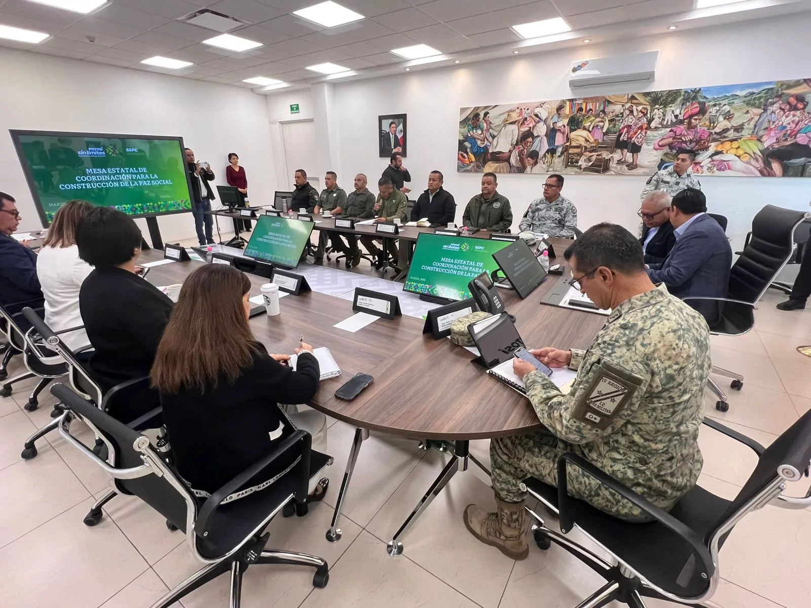 Siguiendo las indicaciones del Alcalde de Soledad de Graciano Sánchez, Juan Manuel Navarro Muñiz, este lunes, la Guardia Civil Municipal acudió a la Mesa Estatal de Coordinación para la Construcción de la Paz, donde presentó el informe de resultados correspondiente al periodo del 20 al 22 de marzo, destacando la captura de dos objetivos prioritarios relacionados al delito de robo a comercio; la detención de 128 personas en labores propias de la corporación, así como 47 más durante el despliegue del dispositivo interinstitucional “Convoy”, implementado en coordinación con la Guardia Civil Estatal y la Guardia Civil Municipal de Villa de Pozos.