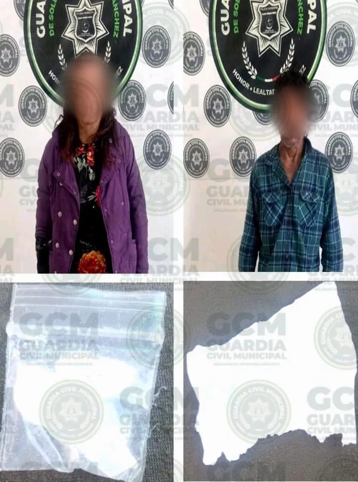 Los arrestos se efectuaron de la siguiente manera: Luis “N”, de 42 años, fue ubicado en Bulevar Valle de los Fantasmas, en la colonia Primero de Mayo, cuando cometía faltas administrativas. Durante la inspección se le encontró una dosis de un material similar a la droga sintética conocida como “cristal”. En Avenida Acceso Norte, en la colonia Industrial Mexicana, policías soledenses detectaron a José “N”, de 56 años, y a María “N”, de 40, quienes incurrían en faltas al Bando de Policía y Gobierno. En total, se les aseguró un pedazo de papel con piedra granulada semejante al “cristal”, un foco con residuos quemados y un envoltorio con material similar a la misma sustancia.