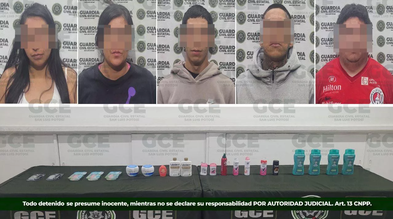 Como resultado de las acciones estratégicas implementadas dentro del “Operativo Galerías”, elementos de la Guardia Civil Estatal (GCE) detuvieron a seis personas, consideradas objetivos prioritarios dedicados al robo a comercio, en la colonia Progreso, en la capital potosina.
