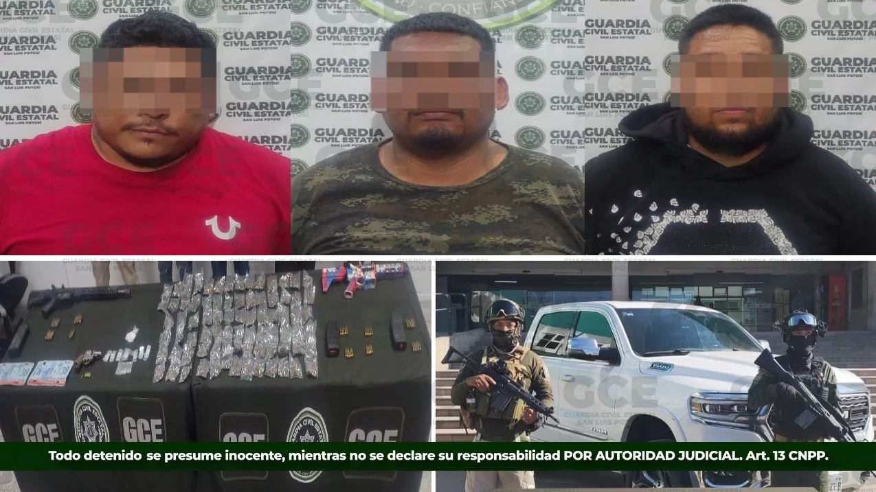 Como resultado de los trabajos operativos y de inteligencia, la Guardia Civil Estatal (GCE) detuvo en Villa de Reyes a tres personas identificadas como Hugo “N” de 26 años, José “N” de 29 años y Tereso “N” de 40 años, a quienes se les identificaba con los alias de «El Mono», «El Tortas» y «El Bélico» y quienes son considerados presuntos generadores de violencia en la región.