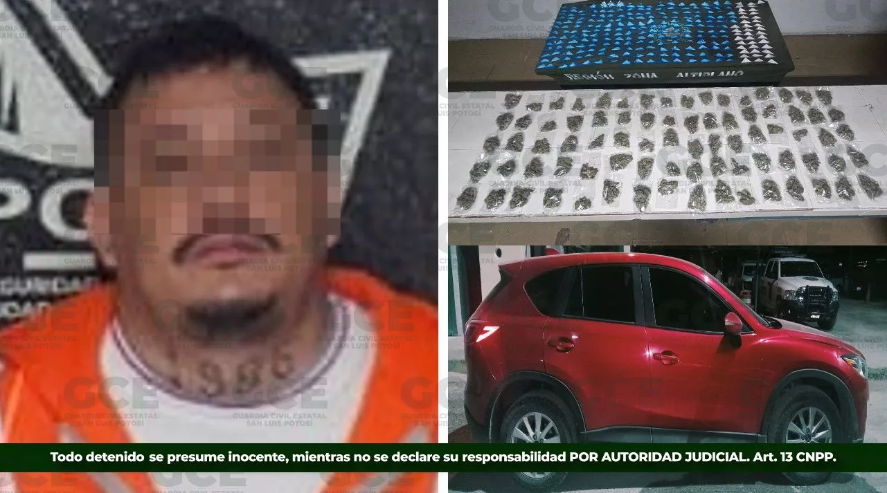 A través de las acciones de inteligencia, la Guardia Civil Estatal (GCE) detuvo a Hugo “N”, de 29 años, y a una adolescente de 15 años, por el probable delito de posesión de estupefacientes, al asegurárseles 650 gramos de marihuana, distribuidos en 80 bolsas pequeñas, además de 200 dosis de “cristal” y 40 de cocaína.