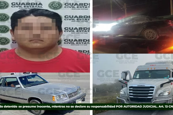 El aseguramiento se dio en la colonia Quintas de la Hacienda, al oriente de la zona metropolitana.Además, dentro de las labores de búsqueda de vehículos, en la comunidad de Los Gómez, fue asegurado un vehículo Chevrolet línea Sonic, modelo 2017, color negro, que tenía reporte de robo en la capital potosina.