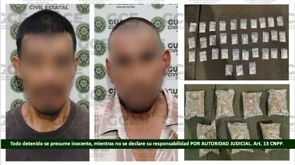 Anastasio “N” de 53 años y Jorge “N” de 42 años, fueron asegurados con siete dosis de marihuana y 33 dosis de metanfetaminas.