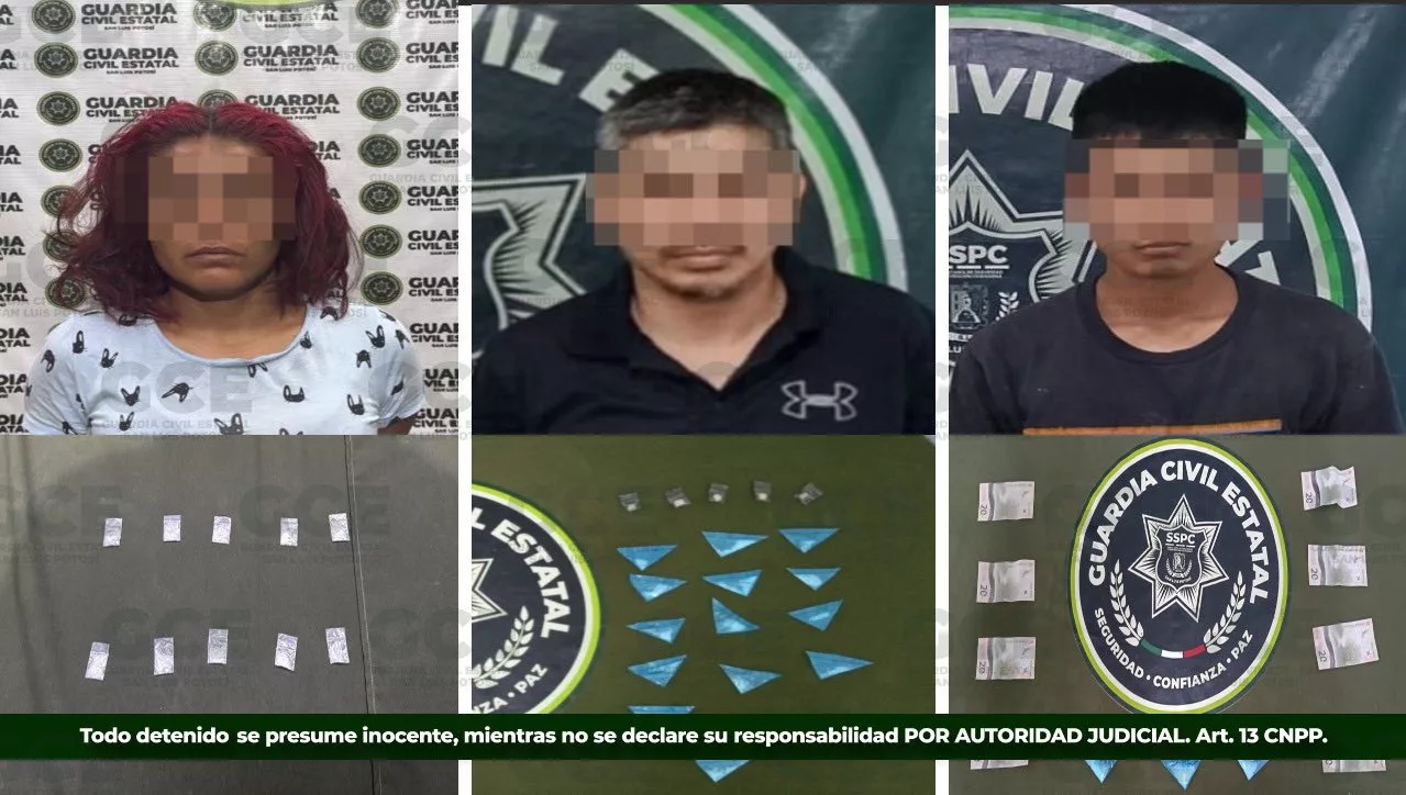 En el municipio de Ciudad Valles, oficiales de la GCE detuvieron a José “N” de 43 años con 16 dosis de “cristal” y cinco de “crack” y a Julio “N” de 21 años con tres dosis de “cristal”, 160 pesos en efectivo y una motocicleta, ambos que cuentan con historial delictivo, por probables delitos contra la salud.