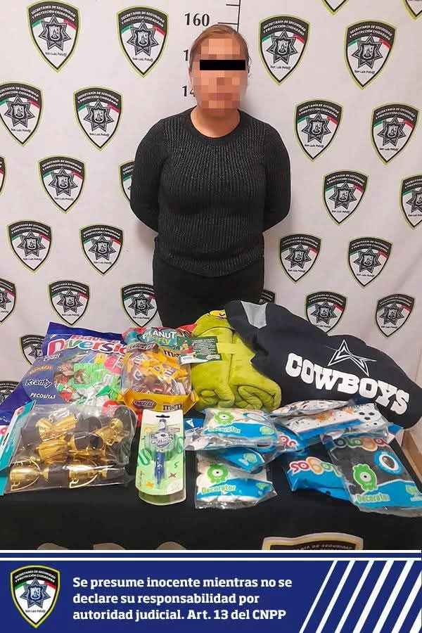 Al revisar la bolsa de la señalada, el personal encontró dulces, prendas de vestir y otros artículos, con un valor total de 1,988 pesos.