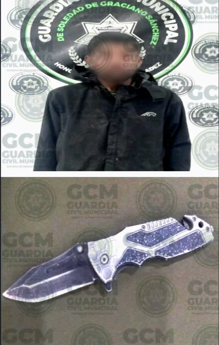 Por otra parte, en patrullajes sobre Avenida Soledad, a la altura de la colonia Valle de Santiago, oficiales municipales tuvieron contacto visual con quien dijo llamarse Manuel “N” de 43 años, quien alteraba el orden público, localizándole un objeto punzocortante semejante a una navaja.