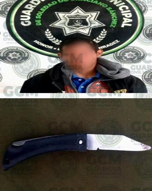 Por otro lado, en la calle 9 de Mayo, en la colonia Primero de Mayo, oficiales municipales observaron a un sujeto que comenzó a correr cuando notó la presencia de la autoridad; luego de darle alcance, se identificó como Juan “N” de 18 años, quien mostró una actitud agresiva, localizándole un objeto punzocortante semejante a una navaja.