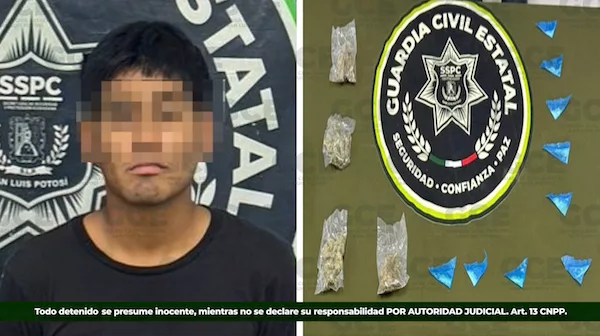 La detenida fue identificada como Deysi “N”, de 18 años, quien fue asegurada por la posesión de 15 dosis de una sustancia con características del “cristal”, manifestando tener vínculos con un grupo que atenta contra la paz de las familias potosinas.