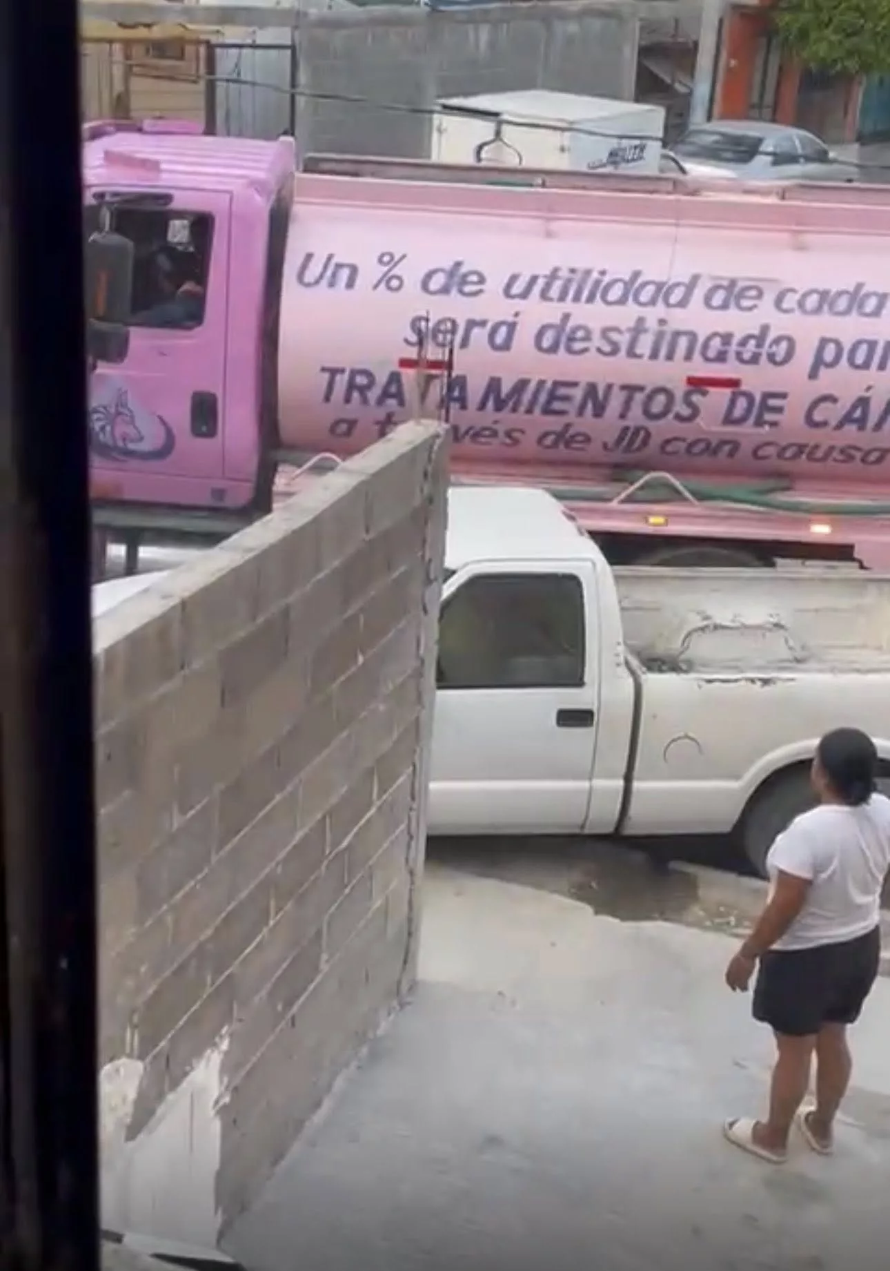“Yo estaba estacionado afuera de la casa, cuando de repente vi que la pipa se vino hacia mi camioneta, impactandola y mandándola hacia la banqueta y le fue y le pego a otra camioneta y se impacto contra el pino de la banqueta”.