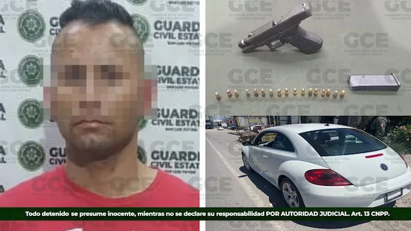 Al presunto, con antecedentes por violencia familiar, lesiones y portación de arma prohibida, se le aseguró un vehículo Volkswagen Beetle color blanco; parte de las acciones constantes para mantener el orden y tranquilidad en todo el territorio potosino, por lo que se exhorta la población a denunciar a través de la Línea de Emergencias 911 y/o de Denuncia Anónima 089, cualquier situación con apariencia de delito que vulnere la integridad de las y los potosinos.