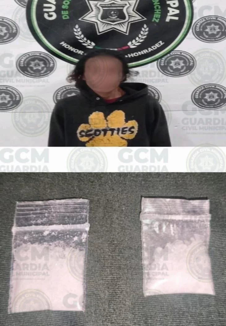 David “N” de 43 años fue detectado en la calle Los Olivos, en la colonia Los Fresnos, cuando incurría en faltas administrativas, localizándole un objeto de vidrio empleado como pipa, así como un envoltorio con piedra granulada semejante a la metanfetamina llamada “cristal”. Sobre avenida José de Gálvez, a la altura de la colonia 21 de Marzo, oficiales femeninas tuvieron contacto con una mujer que dijo llamarse Teresa “N” de 40 años, quien cometía faltas al Bando de Policía y Gobierno, descubriéndole dos bolsas con polvo con las características de la sustancia nombrada “cristal”.