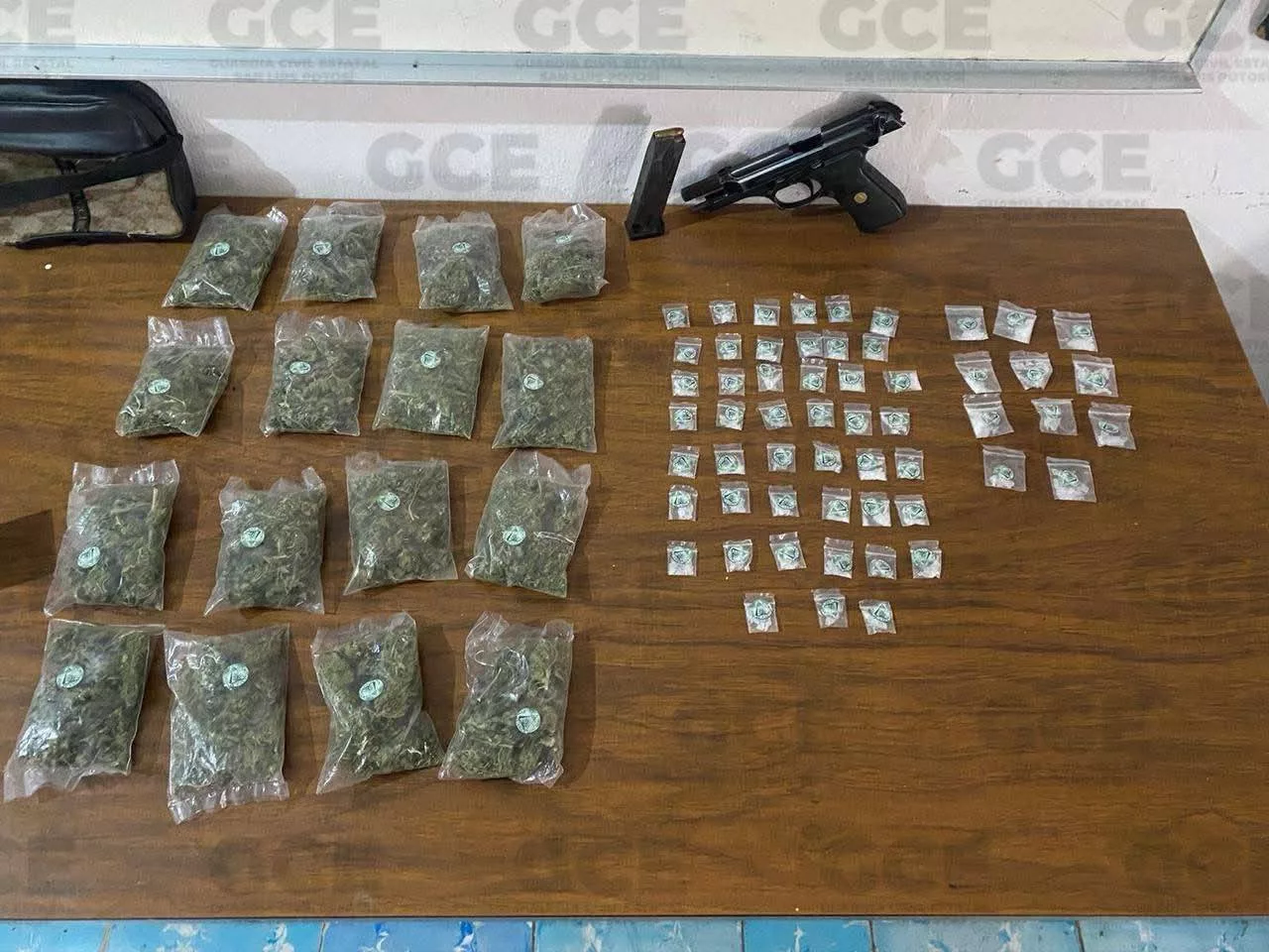 La acción fue llevada a cabo a cabo por la Guardia Civil Estatal con información y coordinación con la Policía de Investigación para ubicar a un objetivo criminal conocido como “El Rodo”, quien se ocultaba en un domicilio particular. Durante el operativo, se aseguró un arma corta calibre 9 milímetros, 46 dosis de cristal y 16 bolsas con marihuana.