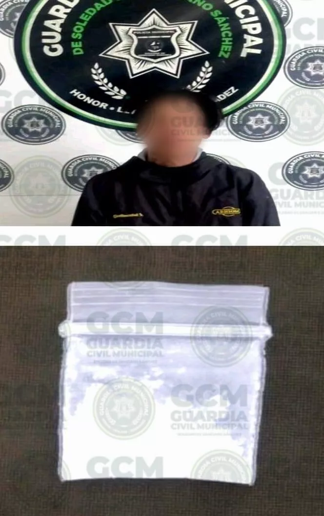 Siete hombres fueron detenidos por oficiales de la Guardia Civil de Soledad de Graciano Sánchez por presuntos delitos contra la salud; a uno de ellos se le sumó el cargo de portación de arma prohibida. Los arrestos se llevaron a cabo en las colonias Fracción Rivera, San Rafael, Santo Tomás, 21 de Marzo, San Miguel y Hogares Obreros, durante patrullajes desplegados para preservar el orden y la paz.