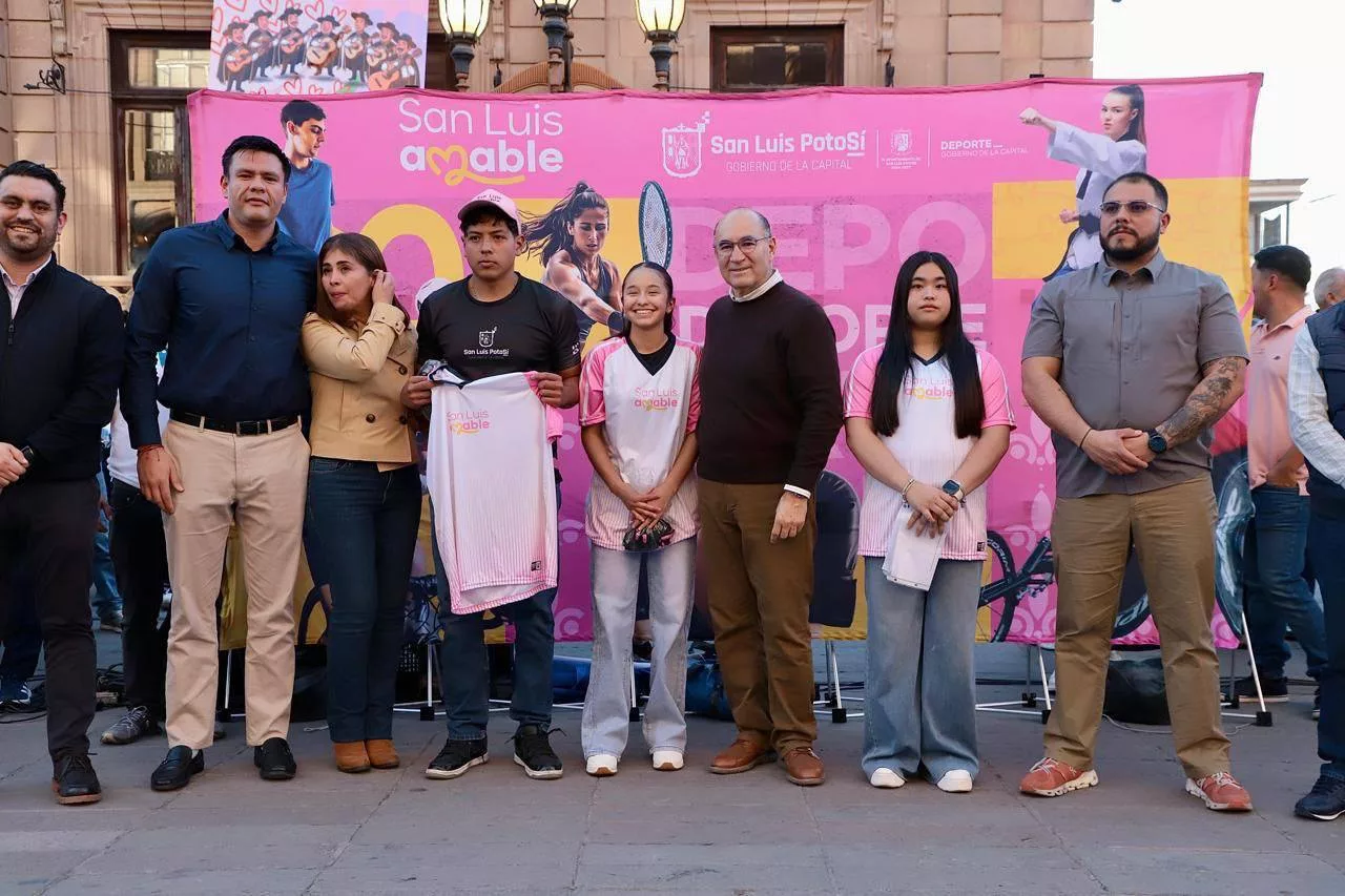 El Presidente Municipal de San Luis Potosí, Enrique Galindo Ceballos, encabezó el abanderamiento de la Delegación Municipal que representará a la Capital potosina en la fase estatal de la Olimpiada Nacional CONADE 2026, en un acto realizado en la Plaza del Carmen, frente al Teatro de la Paz, donde más de 750 atletas recibieron sus uniformes oficiales.