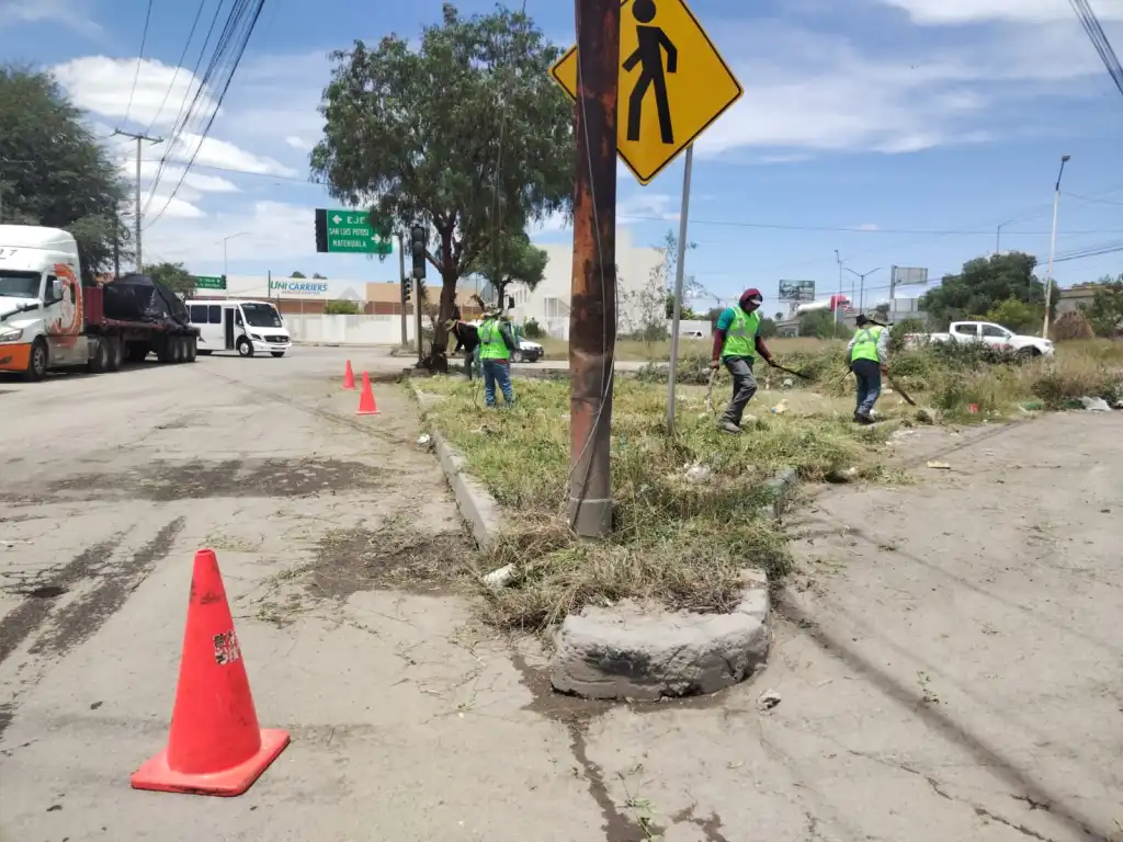 La Junta Estatal de Caminos (JEC) avanza con obras de rehabilitación en la zona industrial de San Luis Potosí. Los trabajos, que incluyen bacheo, limpieza y chapoleo de áreas verdes, se desarrollan con base en estudios técnicos que priorizan las vialidades con mayor deterioro y aforo vehicular, como el eje 128 y el eje 134.