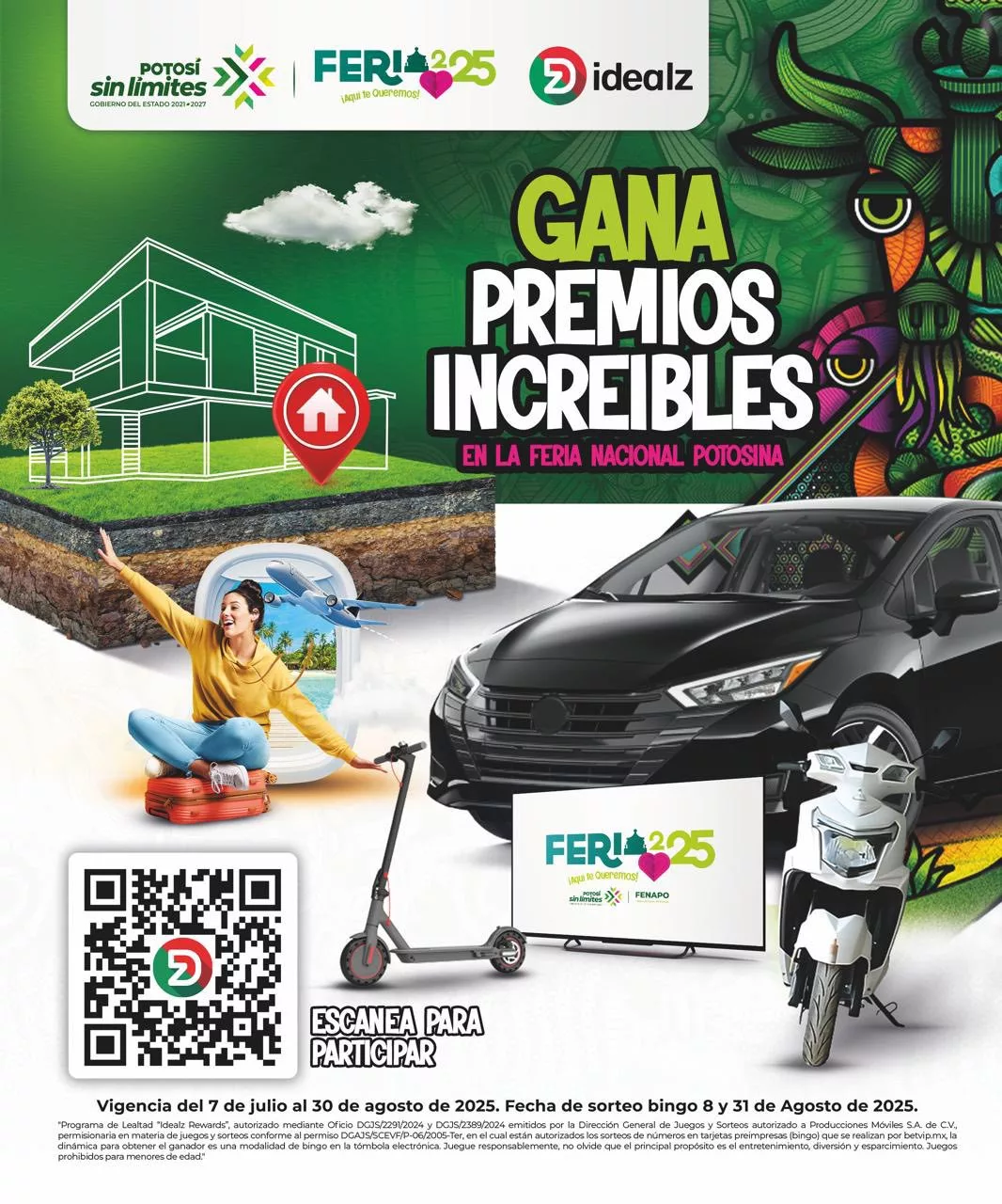 El primer sorteo se realizará en la inauguración de la feria. Para participar, solo debes reclamar tus boletos digitales sin costo en https://m.idealz.mx/feria2025 del 7 de julio al 7 de agosto.