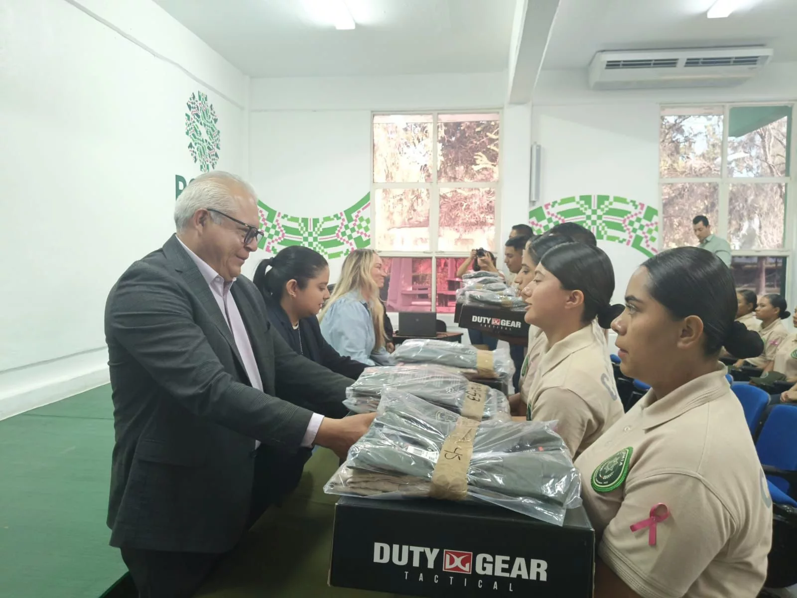 Como parte del apoyo sin límites que el Gobierno del Estado mantiene en materia de seguridad pública, el Secretario Estatal de Seguridad, Jesús Juárez Hernández y la titular del Secretariado Ejecutivo del Consejo Estatal de Seguridad, Noemí Proal Huerta, hicieron entrega de 170 uniformes completos para las y los alumnos próximos a graduarse de la cuarta generación de la Guardia Civil Estatal.