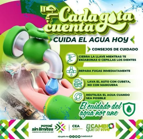 Como parte del compromiso del Gobernador Ricardo Gallardo Cardona por fortalecer el bienestar de las familias potosinas, la Comisión Estatal del Agua (CEA) puso en marcha una campaña para promover el uso responsable del agua ante el inicio de la temporada de calor. Esta iniciativa forma parte del impulso sin límites a la conciencia social sobre la importancia de cuidar el recurso hídrico en la vida diaria.
