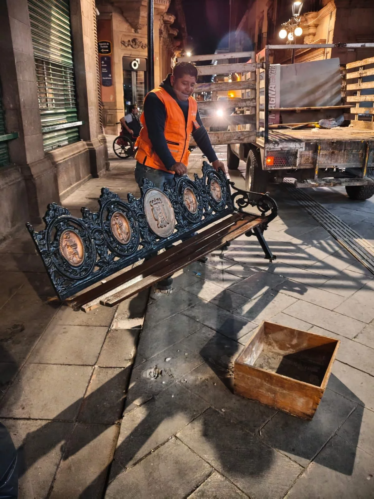 En este sentido, la Coordinación de Imagen Urbana realizó el retiro de una banca dañada en el pasaje Zaragoza, luego de que presentara una ruptura que impedía su uso adecuado y representaba un posible riesgo para peatones.