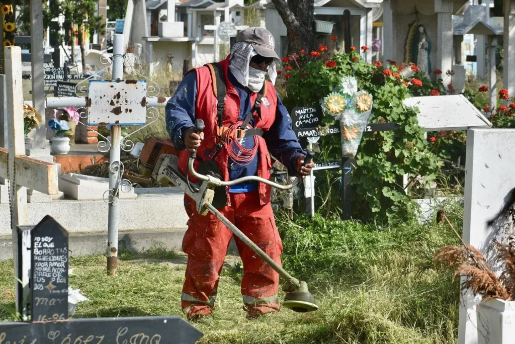 El Gobierno de la Capital, a través de la Dirección de Servicios Municipales, continúa con acciones permanentes de mantenimiento en los espacios públicos de San Luis Potosí. En esta ocasión, la Coordinación de Parques y Jardines llevó a cabo trabajos de limpieza y retiro de maleza en el Cementerio Municipal Españita.