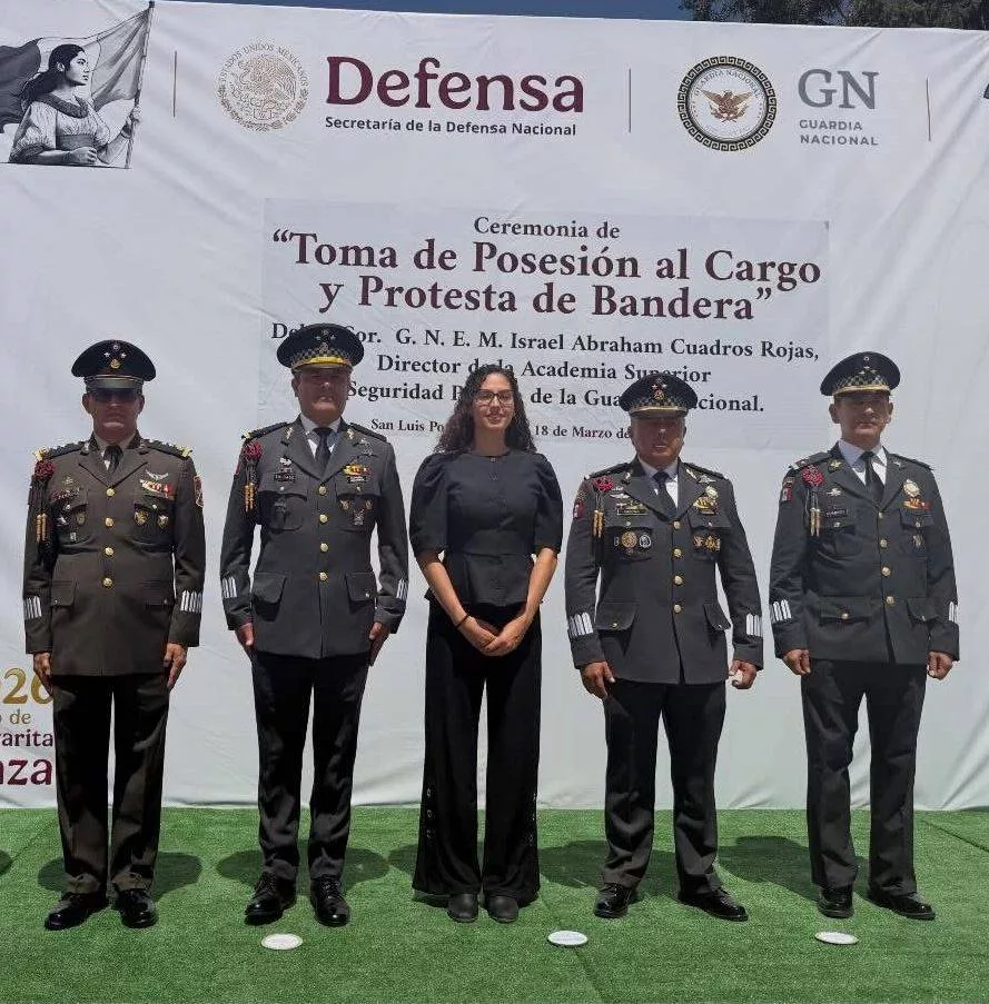 Siguiendo la instrucción del Gobernador Ricardo Gallardo Cardona de fortalecer sin límites la seguridad, la Secretaría General de Gobierno (SGG), a través de la Subsecretaría de Enlace Interinstitucional, refrenda el compromiso de trabajar de manera coordinada con las instituciones federales tras el relevo en la dirección de la Academia de la Guardia Nacional, ahora encabezada por Israel Abraham Cuadros Rojas, consolidando esfuerzos en materia de seguridad y justicia en San Luis Potosí.