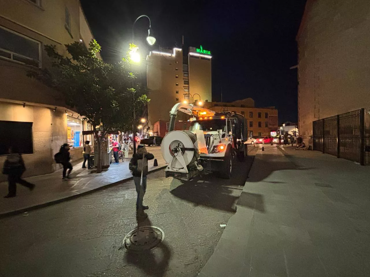 SLP.- De cara a la temporada de Semana Santa, INTERAPAS realizó una limpieza preventiva intensiva en la red sanitaria del Centro Histórico, para mantener en buenas condiciones esta zona de alta afluencia durante estas fechas.