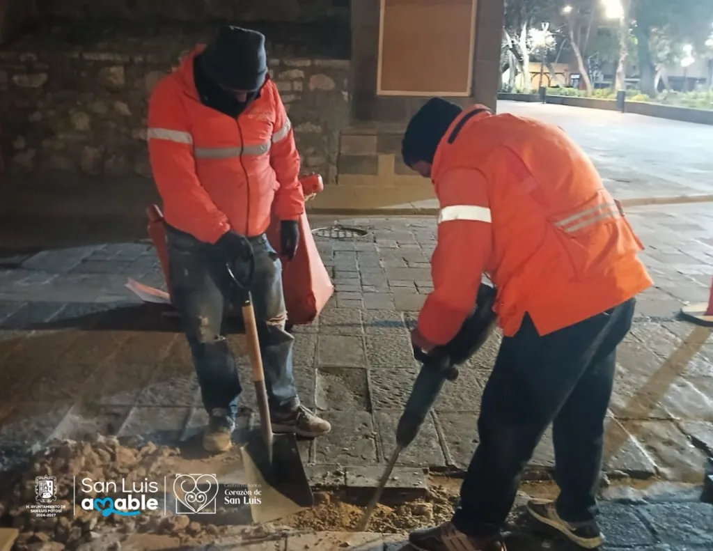 La Unidad de Gestión del Centro Histórico (UGCH) del yuntamiento de San Luis Capital informó que, durante las últimas noches, la cuadrilla de Respuesta Inmediata, en coordinación con el área de Imagen Urbana, llevó a cabo diversos trabajos de mantenimiento en calles y espacios del primer cuadro de la ciudad, con el objetivo de mejorar la movilidad y reforzar la seguridad de peatones y automovilistas.