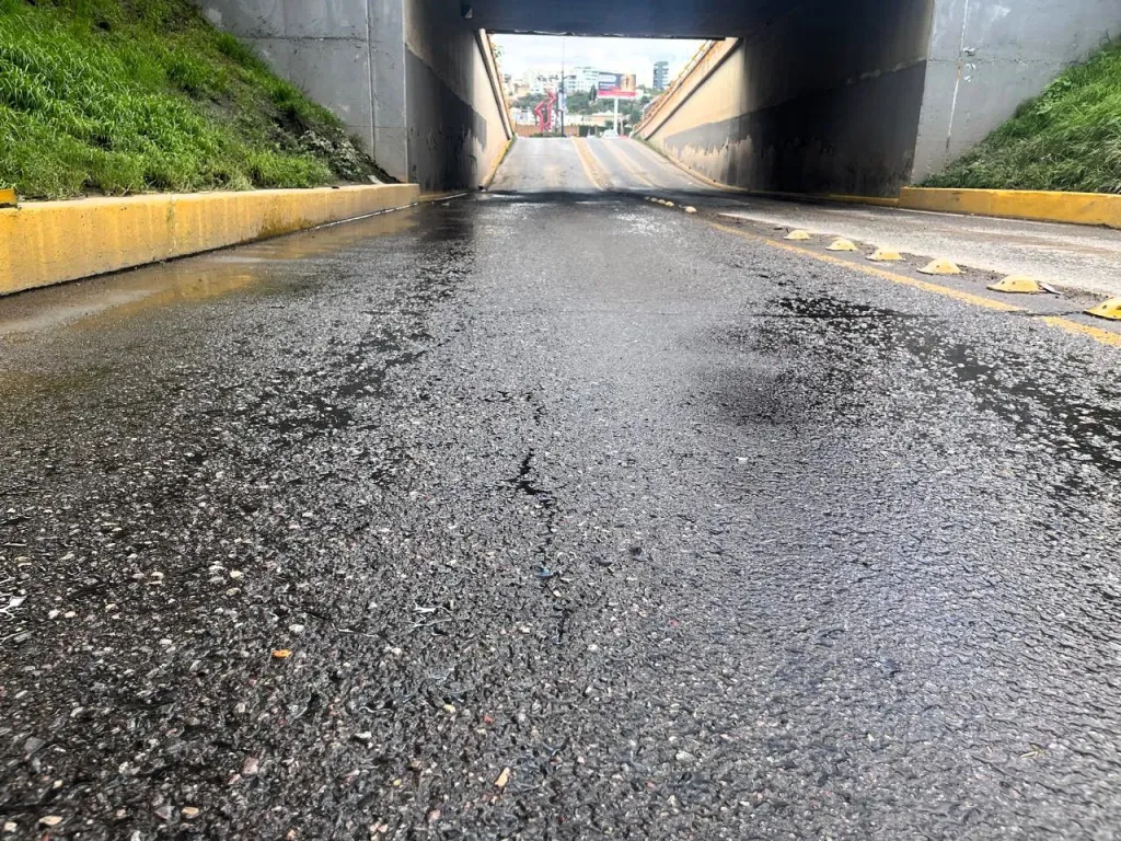 Asimismo, los trabajos de limpieza y desazolve preventivo han sido fundamentales. En el puente inferior de la Glorieta de la Familia, en la salida a la carretera a Guadalajara, se logró reducir significativamente el tiempo de desagüe: el agua acumulada desciende de manera más rápida y efectiva, devolviendo la normalidad al tránsito en pocas horas tras la lluvia.