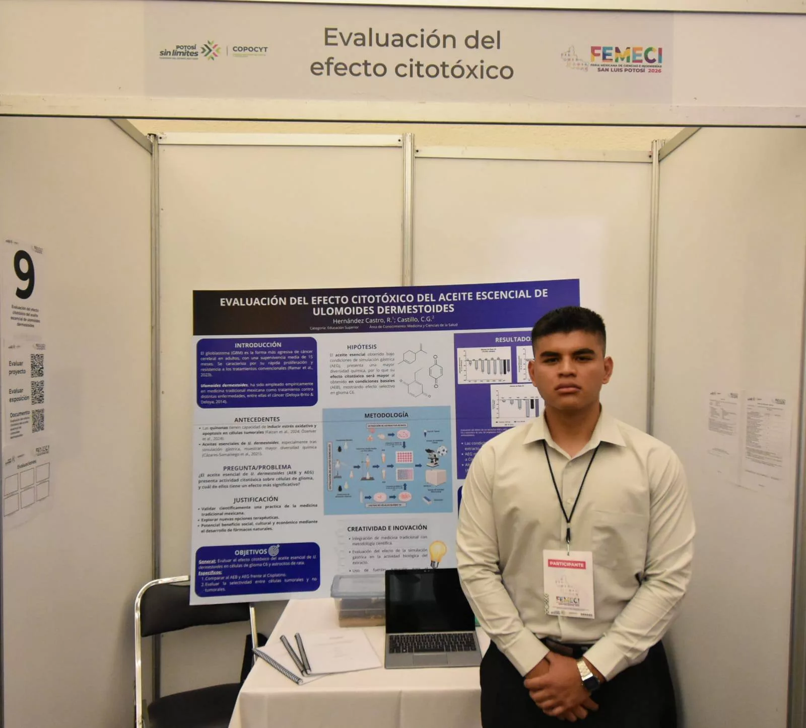 Con el respaldo del Gobernador Ricardo Gallardo Cardona, a través del Consejo Potosino de Ciencia y Tecnología (Copocyt), un proyecto de estudiantes de la Universidad Autónoma de San Luis Potosí (UASLP) fue seleccionado para representar a San Luis Potosí en la Feria Mexicana de Ciencias e Ingenierías (FEMECI). La investigación sobre el efecto citotóxico del aceite esencial de Ulomoides dermestoides fortalece el ecosistema científico local y refleja el cambio que se vive y se siente en materia de ciencia, tecnología e innovación.
