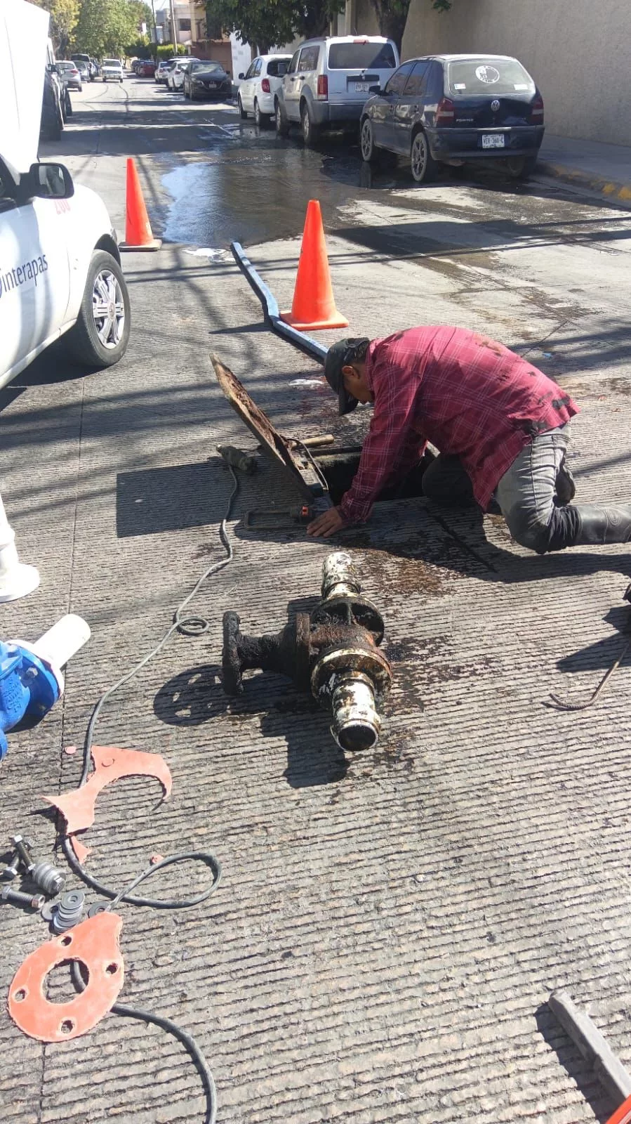 Personal de INTERAPAS realizó trabajos de mantenimiento en la red de agua potable de la colonia Lomas 3ra Sección, donde se detectó que una válvula de control se encontraba obstruida por raíces, lo que impedía el paso adecuado del líquido.