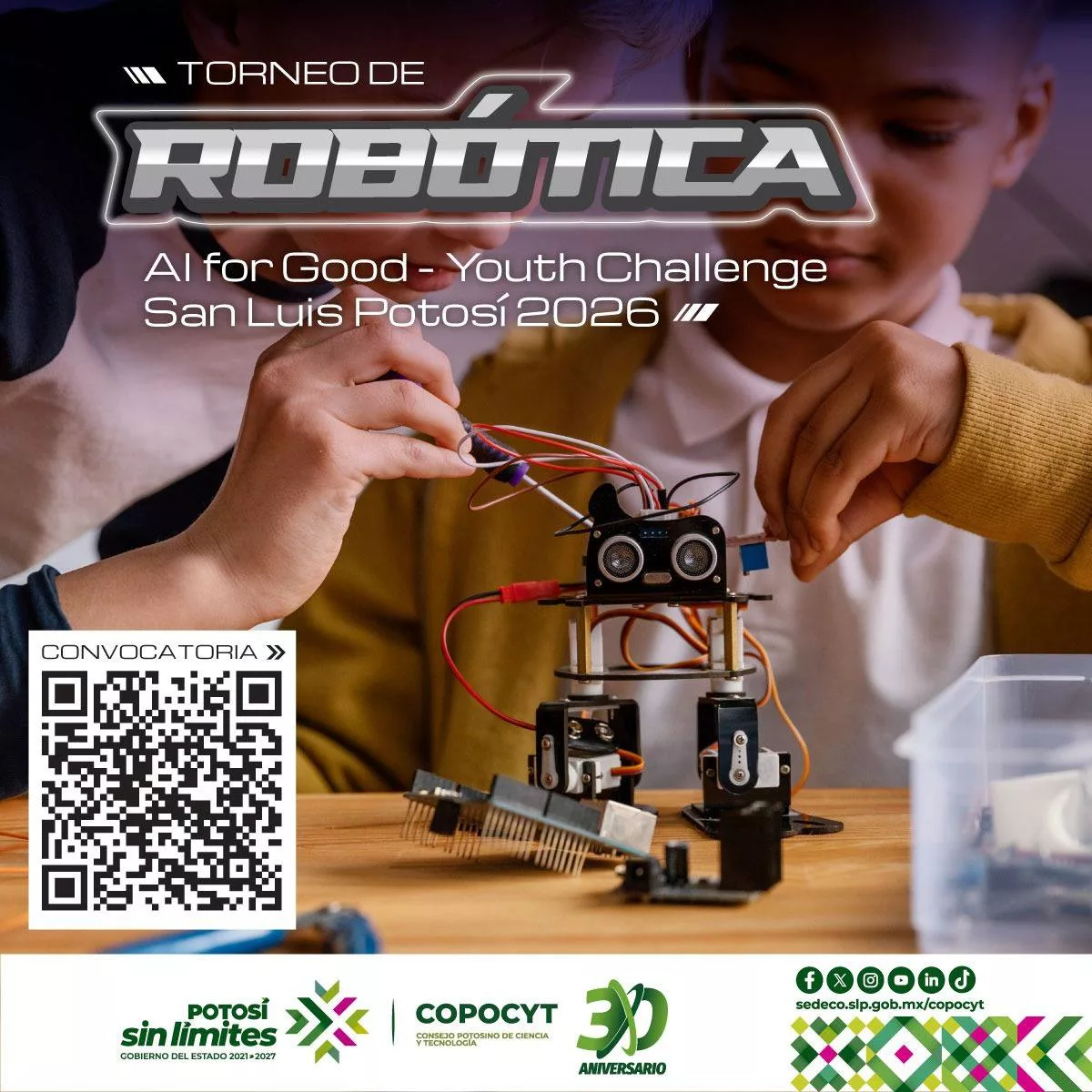 El Consejo Potosino de Ciencia y Tecnología (Copocyt) lanzó la convocatoria para el AI for Good – Youth Challenge: San Luis Potosí 2026, dirigida a estudiantes de educación secundaria y media superior de instituciones públicas y privadas, con el objetivo de fomentar el interés por la robótica y la inteligencia artificial desde las aulas. Esta iniciativa se suma al impulso que el Gobernador Ricardo Gallardo Cardona ha dado a la ciencia, la innovación y la formación de nuevas generaciones con herramientas de alto impacto.