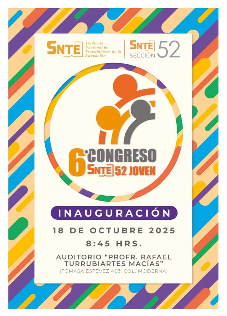 La Sección 52 del Sindicato Nacional de Trabajadores de la Educación llevará a cabo los días 18 y 19 de octubre el 6° Congreso SNTE Joven, un encuentro que busca fortalecer el liderazgo, la identidad sindical y el compromiso de las nuevas generaciones del magisterio potosino.