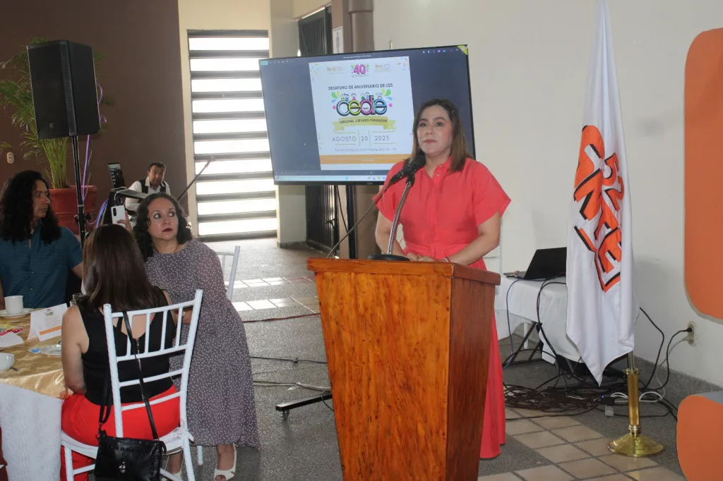 La Sección 52 del Sindicato Nacional de Trabajadores de la Educación (SNTE), encabezada por su secretaria general, Mtra. Elizabeth Bibiana Guerrero Milán, celebró el 40 aniversario de los Centros de Desarrollo Infantil del Estado (CEDIE) con un desayuno de reconocimiento al personal jubilado fundador, realizado en el Centro Social y Cultural Huelguistas de 1931.