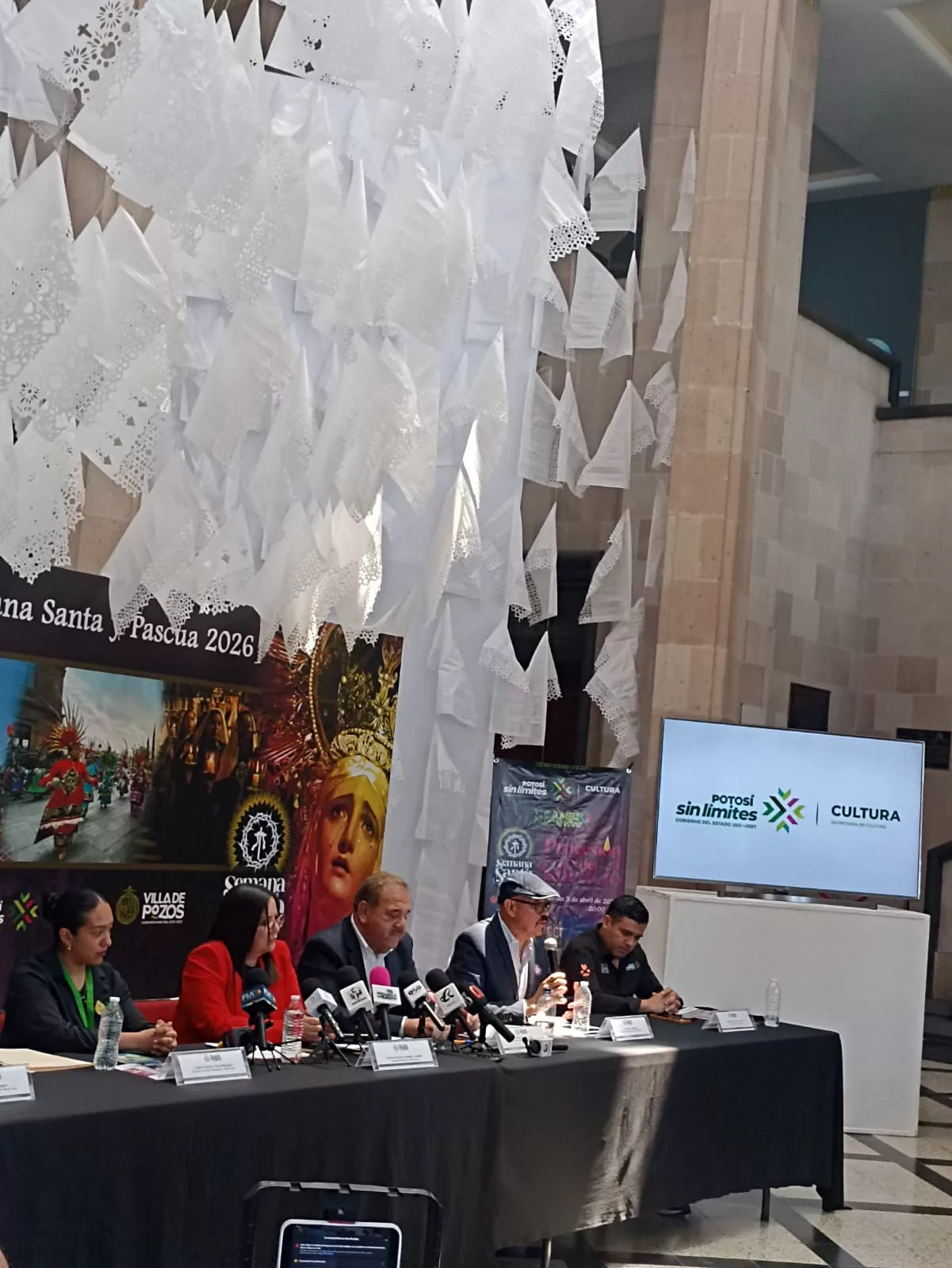 Sin embargo, ante las preguntas, sucumbieron las autoridades con pocas respuestas. Se les preguntó sobre todo la oferta académica y no había mucho qué decir salvo “los conversatorios” de los cuales tampoco se dijo dónde, cuándo, quiénes cómo se irían a realizar estos conversatorios y sólo se limitaron a mostrar un folleto de los eventos en Villa de Pozos el cual, anunciaba algunas acciones en la capital potosina pero no todas, o sea que, ante las preguntas, no iba preparado el personal de la secretaria de Cultura.