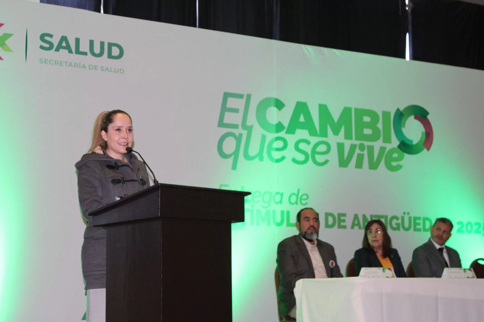 Al respecto la secretaria de Salud, Leticia Gómez Ordaz, dijo que en el marco del cambio que se vive y se siente en el Estado, se valora el trabajo de todo el personal médico, de enfermería, administrativo y de apoyo, por lo que se entregaron medallas conmemorativas y estímulos económicos que van de 15 mil a 30 mil pesos, según la antigüedad. Del total de personas reconocidas, 63 fueron mujeres.
