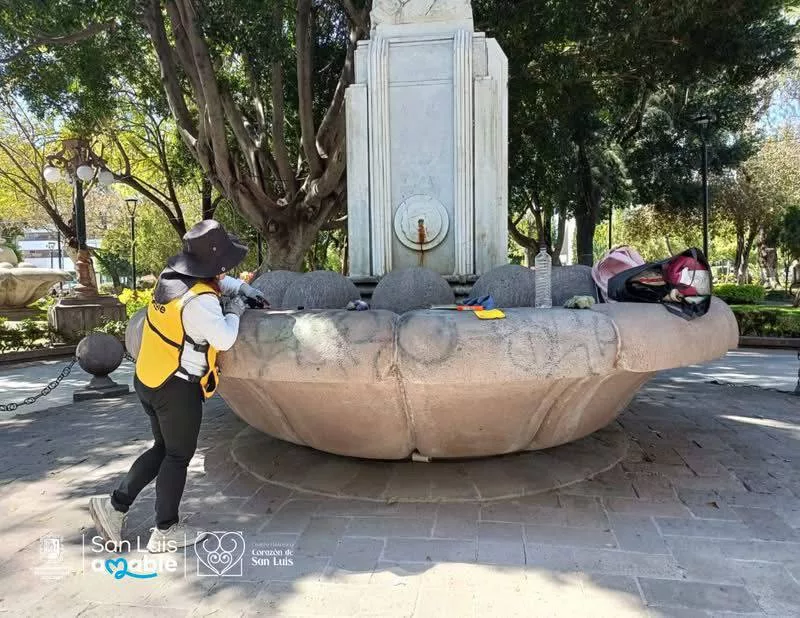La Unidad de Gestión del Centro Histórico (UGCH) realizó el retiro de pintas en el Jardín de Tequisquiapan, como parte de las acciones permanentes para el cuidado y conservación de nuestros espacios públicos y monumentos artísticos, estas labores estuvieron a cargo del personal de la Cuadrilla de Atención Inmediata, en coordinación con el equipo de Restauración de Monumentos Históricos.