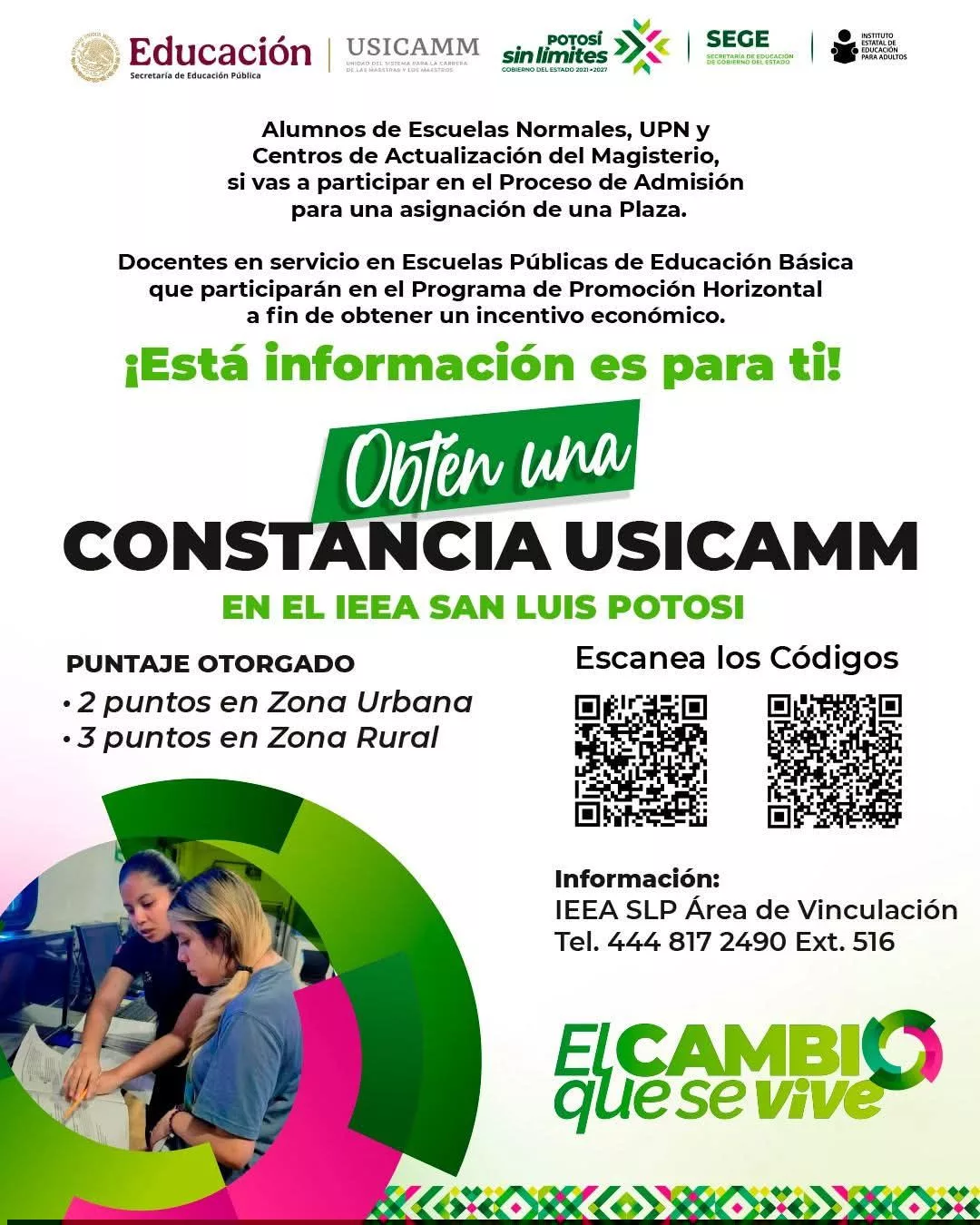 La colaboración entre el IEEA SLP, que lidera el Prof. José Luis Castro Castillo, y la Unidad del Sistema para la Carrera de las Maestras y los Maestros (USICAMM), abre sus puertas a estudiantes de Formación Magisterial de las Escuelas Normales, UPN y Centros de Actualización del magisterio que deseen participar en el proceso de admisión para asignación de una plaza, Docentes en Servicio en Esc. Públicas para participar en el proceso de Promoción Horizontal.