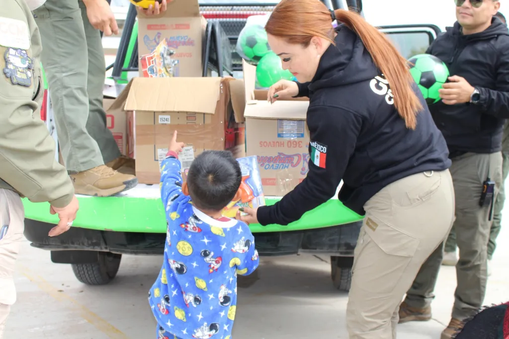 La alegría de la Navidad llegó a niñas y niños de localidades rurales de Soledad de Graciano Sánchez, con la visita sorpresa de integrantes del agrupamiento “Panteras” y de la subdirección de Proximidad Social, que forman parte de la Guardia Civil Municipal (GCM), quienes recorrieron este 25 de diciembre las comunidades Estación Techa y Estación Ventura para entregar juguetes y hacer vivir a las y los pequeños un momento especial.