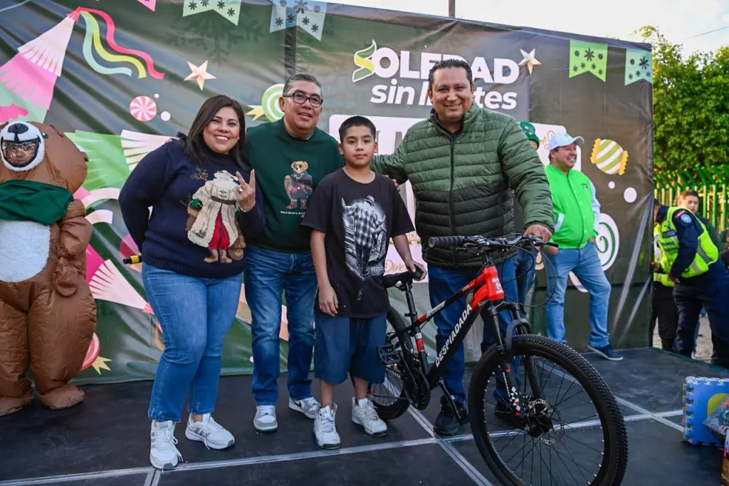 Juan Manuel Navarro Muñiz, Alcalde de Soledad de Graciano Sánchez, encabezó el segundo día de recorridos por colonias del municipio para llevar alegría y cercanía a las familias a través de las tradicionales posadas navideñas, con entrega de regalos y juguetes para niñas y niños, así como cobertores para personas adultas mayores; en las colonias Hogares Ferrocarrileros, Rivas Guillén Sur, Hogares Obreros y San Luis 1, afirmó que Soledad es el mejor municipio del estado, resultado de una línea de gobierno cercana que escucha y atiende a la población.