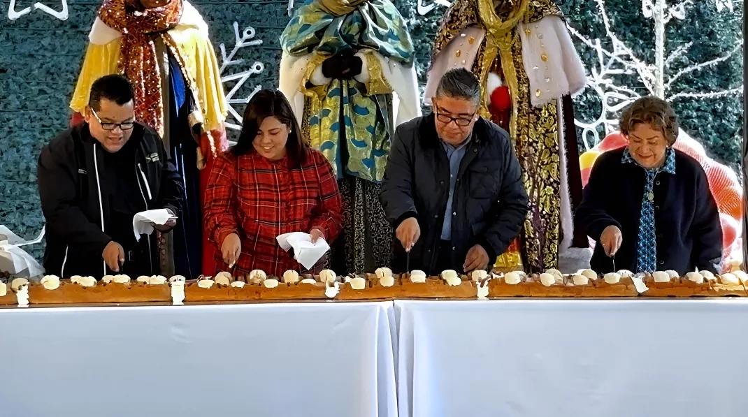 Este 6 de enero, el Ayuntamiento de Soledad de Graciano Sánchez reunió a autoridades y ciudadanos en la tradicional Partida de Rosca de Reyes en la plaza principal del municipío.
