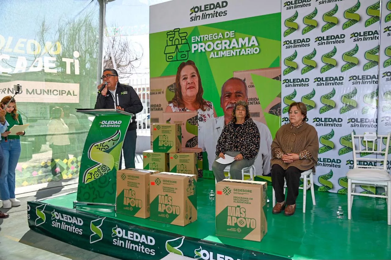 Juan Manuel Navarro Muñiz, Alcalde de Soledad de Graciano Sánchez, arrancó este día una nueva entrega del Programa Alimentario en la colonia Fidel Velázquez, un apoyo que llega a más de 27 mil familias del municipio, y que es considerado uno de los más sólidos y representativos de la administración; ante cientos de beneficiarias y beneficiarios, destacó que este esquema fortalece la economía familiar y garantiza alimentos básicos en los hogares que más lo necesitan, manteniendo una política de cercanía y atención directa a la población.