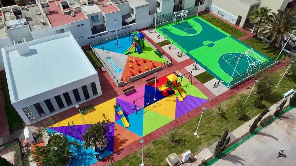 A través de una red integral de Parques Urbanos y recreativos, el Alcalde, Juan Manuel Navarro Muñiz impulsa espacios seguros, sitios de entretenimiento sano y oportunidades para el desarrollo social de las familias de Soledad de Graciano Sánchez, como una estrategia para fortalecer los valores, la paz y la seguridad pública en todos los rincones del municipio, además de brindar herramientas para fomentar el deporte entre la niñez y la juventud.