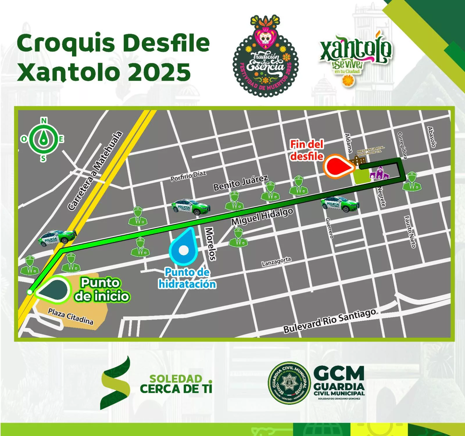 Con motivo de las festividades del Día de Muertos y Xantolo, este domingo 26 de octubre habrá cierres parciales en diversas calles del centro, desde el carril lateral de la Carretera Matehuala y calle Hidalgo hasta la Presidencia Municipal, frente al Jardín Hidalgo, por lo que se pide a comerciantes y habitantes retirar sus vehículos con 48 horas de anticipación.