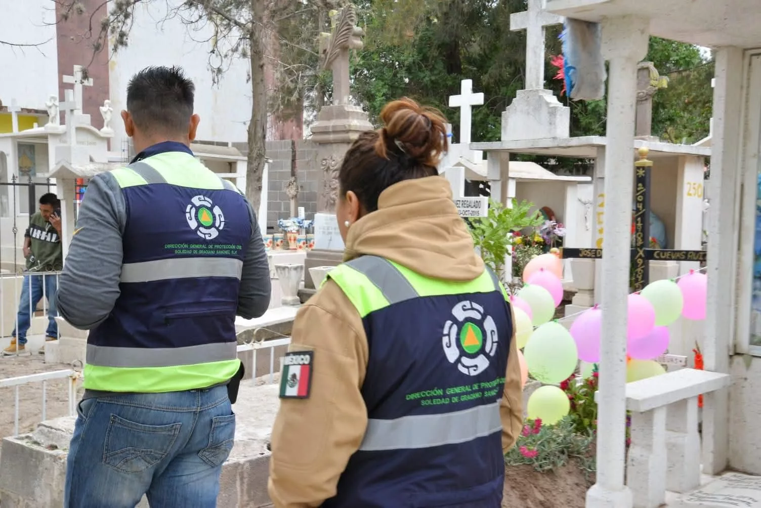 Ante la víspera de las festividades de Día de Muertos, y con el fin de garantizar la salvaguarda de las familias que asistan a las diferentes actividades culturales, el Ayuntamiento de Soledad de Graciano Sánchez alista el dispositivo de vigilancia, que contempla la presencia de personal en los panteones municipales y privados, así como en los eventos que se realizarán en distintas sedes del municipio, en aras de obtener saldo blanco.