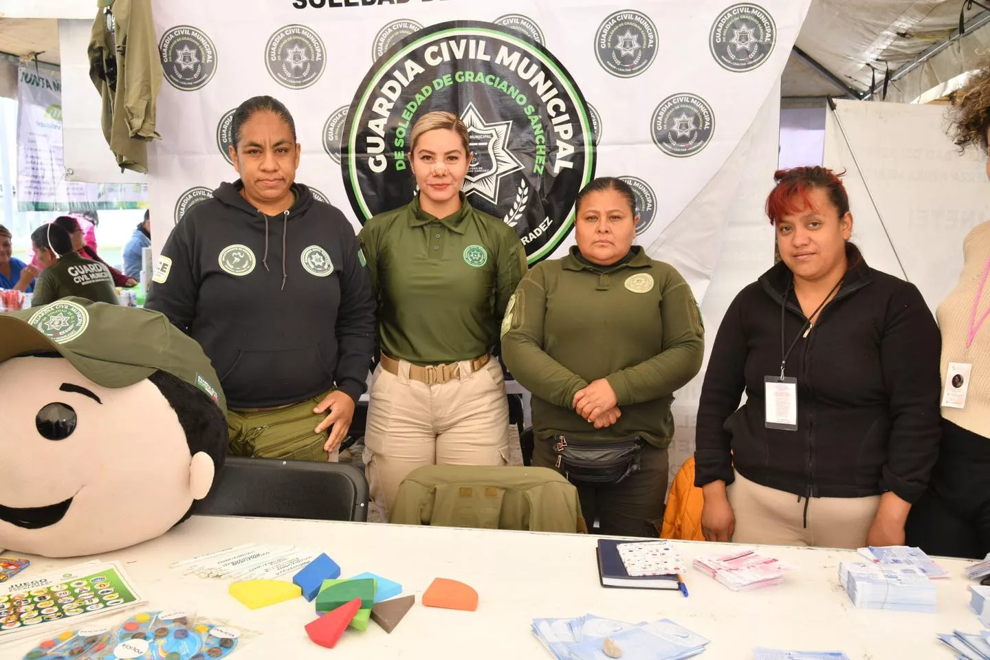 La feria contó con la coordinación de dependencias municipales y estatales, entre ellas la Guardia Civil Estatal con gabinete médico, agrupamiento canino, deportes y prevención del delito; por parte del municipio participaron áreas como Participación Ciudadana, Derechos Humanos, coordinaciones municipales, Servicios Municipales, reclutamiento y el DIF, asimismo, el Ejército y la Guardia Nacional acompañaron estas actividades, reforzando el mensaje de trabajo conjunto para estar más cerca de la ciudadanía y atender de manera integral a las familias soledenses.
