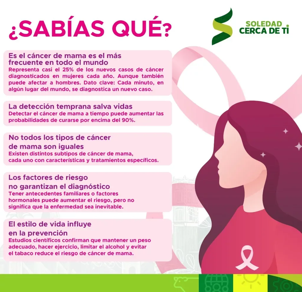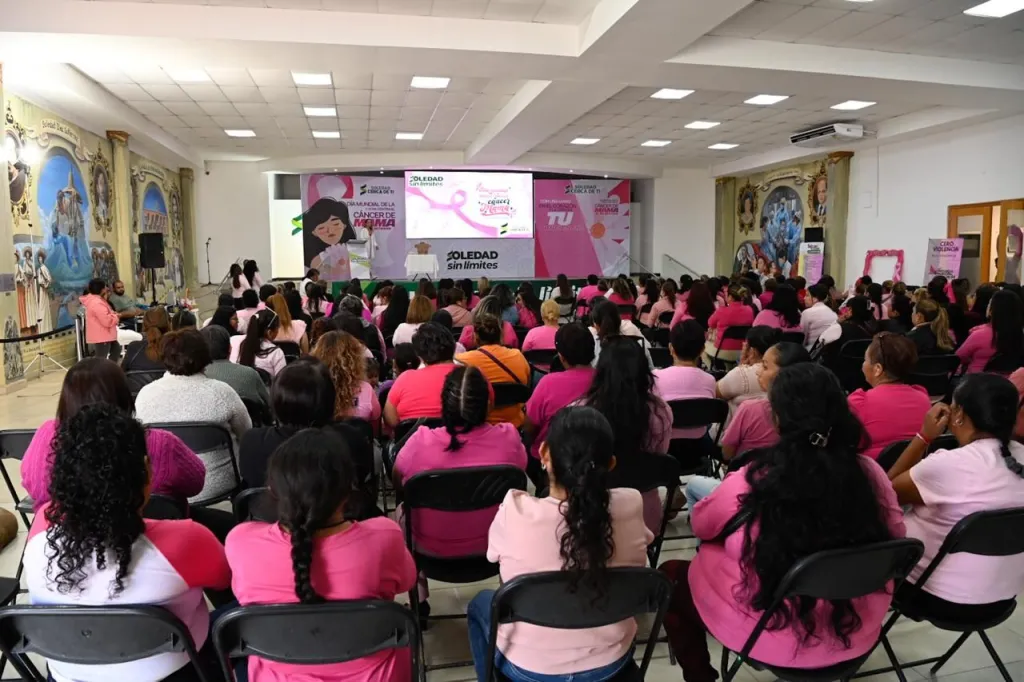 Como parte de las jornadas preventivas en el marco del Día Internacional de la lucha Contra el Cáncer de Mama, este 19 de octubre, el Ayuntamiento de de Soledad de Graciano Sánchez, encabezado por el Alcalde Juan Manuel Navarro Muñiz, brindó un espacio de reflexión y sensibilización para fortalecer la cultura del autocuidado con el Foro Rosa: “Con una mano en el corazón y otra en tu conciencia”, donde se brindó información y orientación sobre la prevención, detección temprana y atención del cáncer de mama a mujeres soledenses.